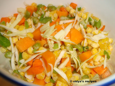Mix of vegetables - I used carrot, beans, cabbage, celery, sweet corn,yellow pumpkin, Used 4 diff colored vegetables)- 1 cup